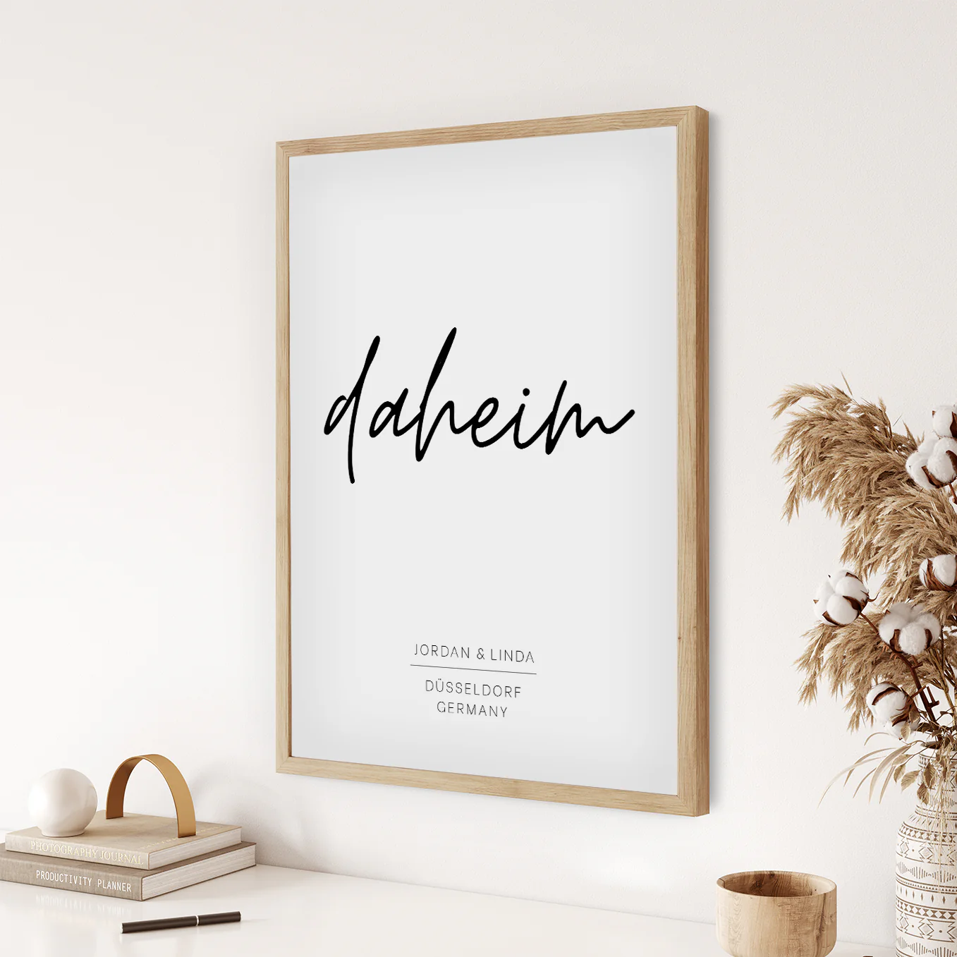 For the whole family - the"Home"poster as a personalized family poster. Simply personalize the poster with the names of your family and the location of your home.
