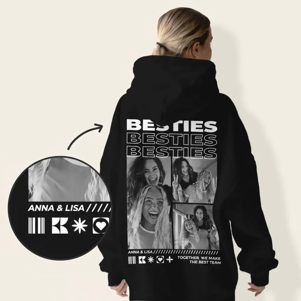 Show your friendship! The personalized "Besties Hoodie" captures your best memories with photos and names.