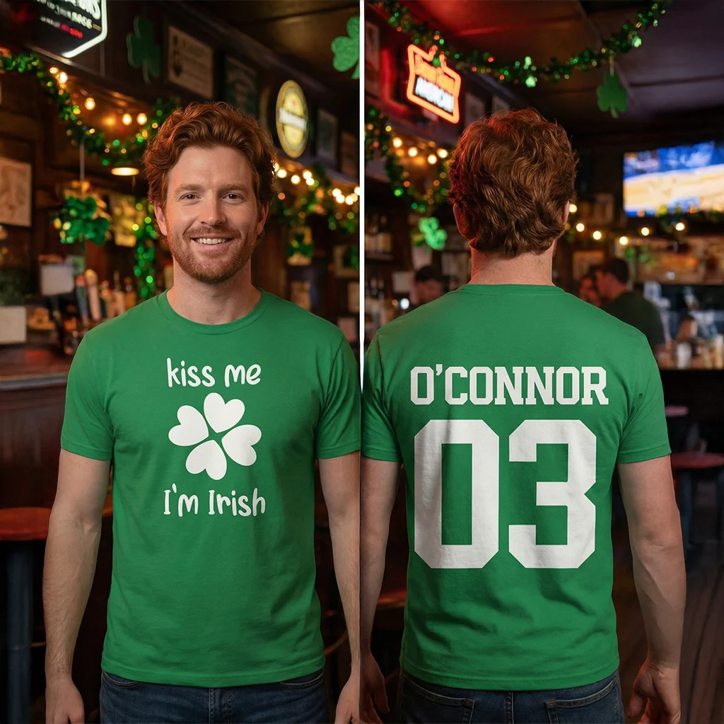 Celebrate March 17 in a personalized St. Patrick’s Day T-shirt with custom name & number. Pinch-proof and party-ready.
