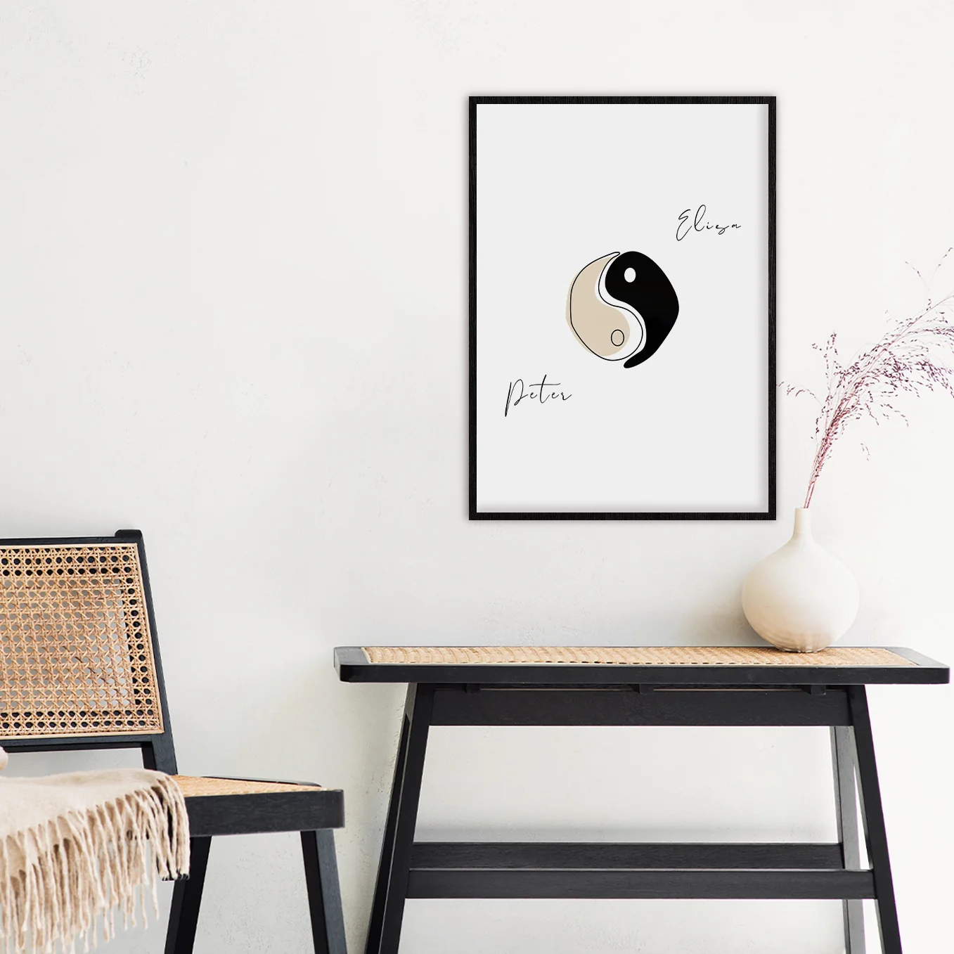 Who is yin and who is yang? Design your personalized"Ying Yang"couple poster now. The perfect personalized gift for you on an anniversary, Valentine's Day or even a wedding. Simply personalize the poster with your two names.